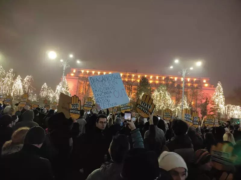 Culmea, culmilor: la Cluj, o doamnă venită de la Baia Mare striga aseară și „Nicușor Dan, demisia!”. Oameni aduși la protest fără să știe împotriva cui trebuie să strige, dar toți cu aceeași pancartă galbenă: „Toți pentru justiție”.
